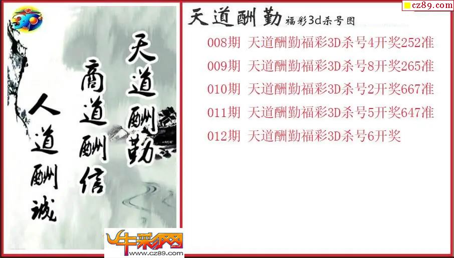 > 26年012期3d 天道酬勤杀号图