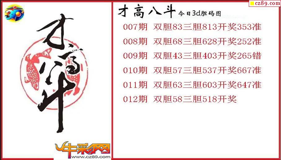 > 26年012期3d 才高八斗今日胆码图